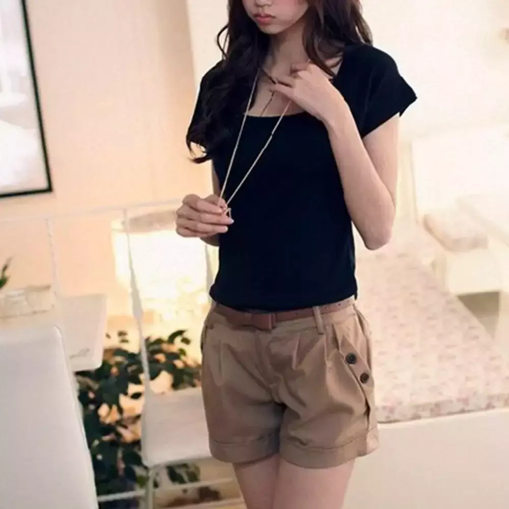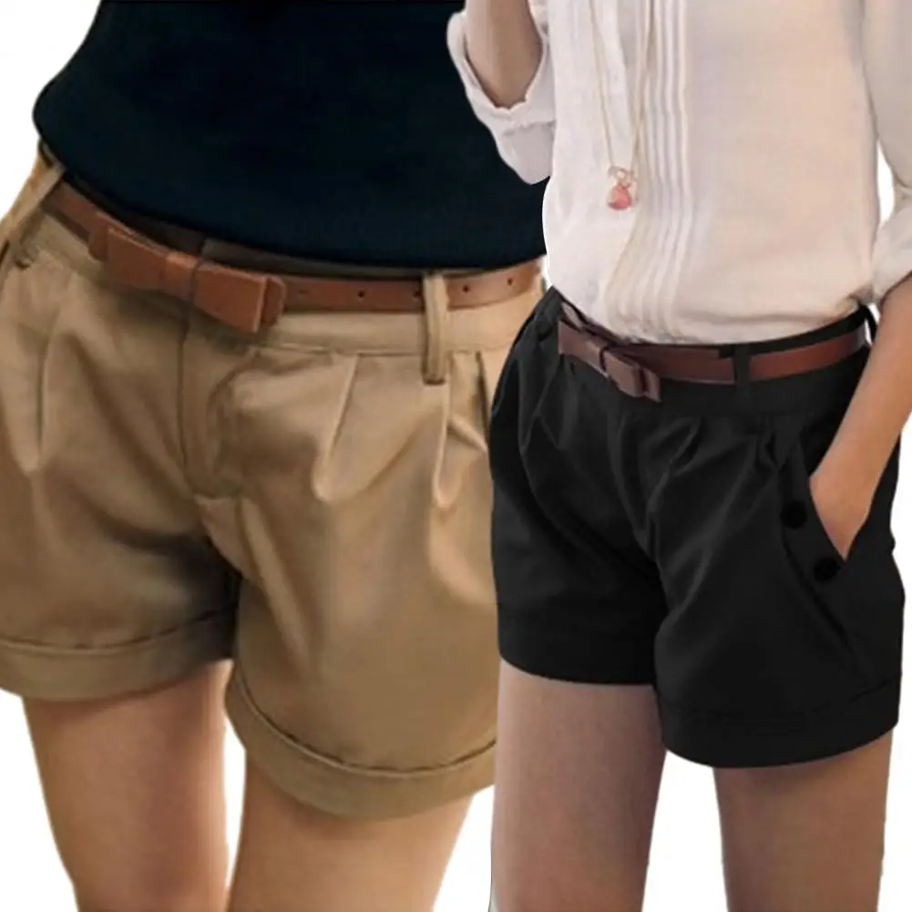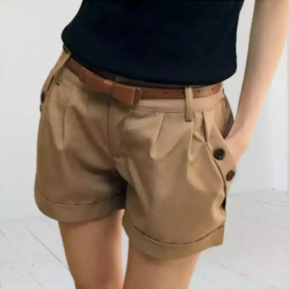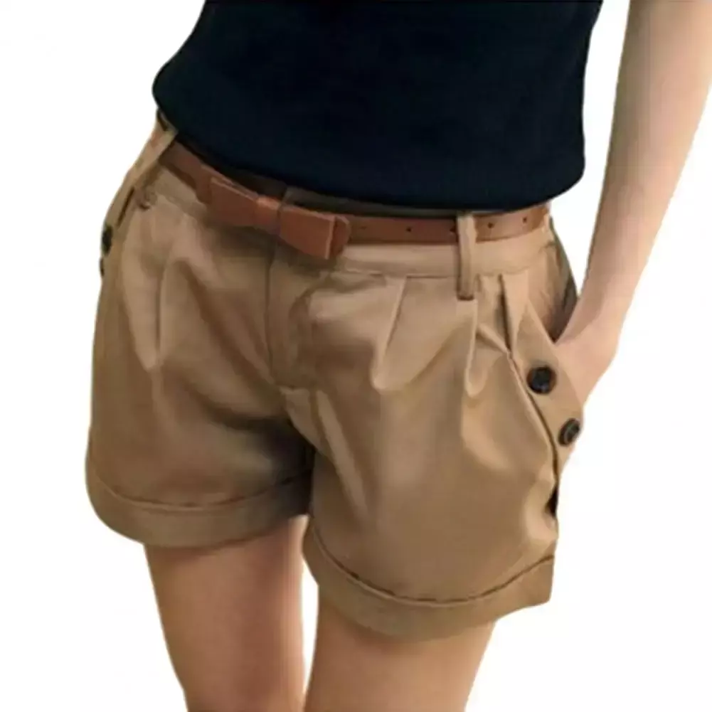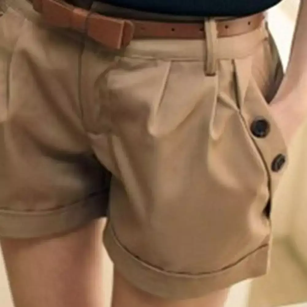 Mulheres verão shorts cor sólida botão reto decoração uso diário shorts cintura alta casual calças curtas roupas femininas